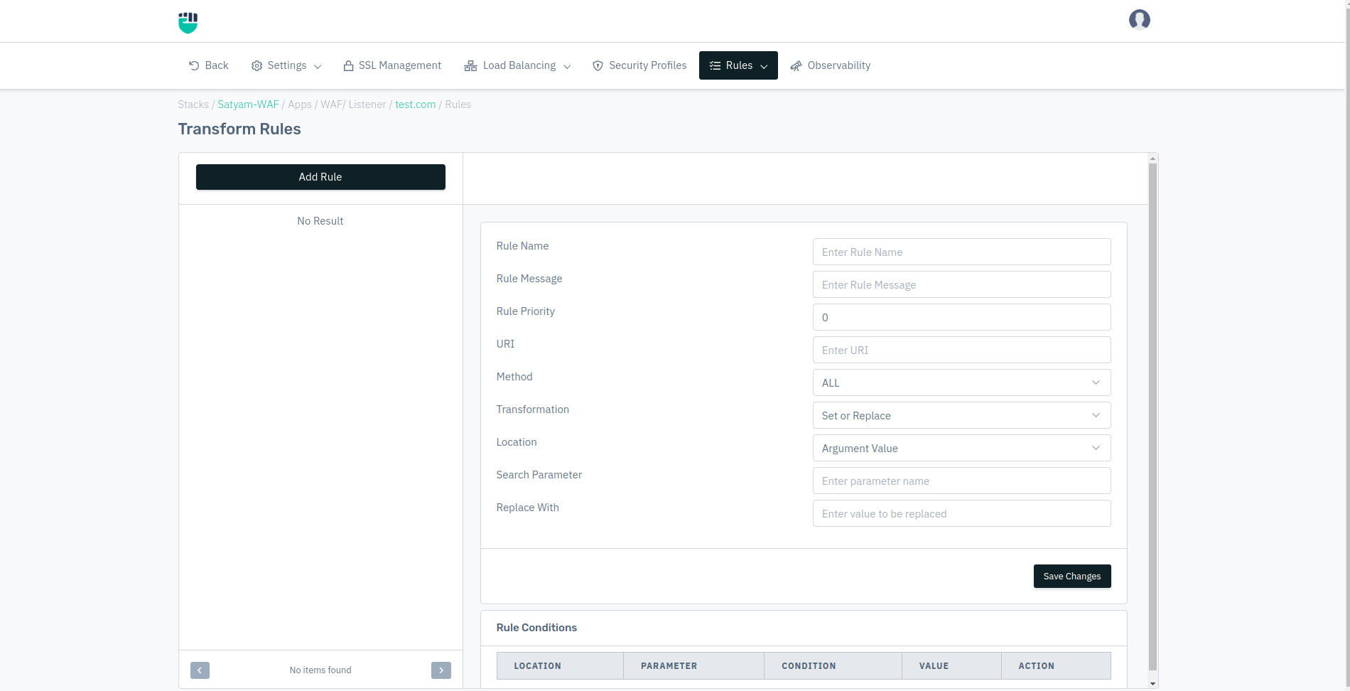 1.Go to WAF > Listeners > Rules > Tranform Rule