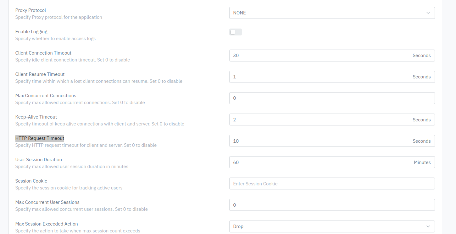 This option is only applicable in the case of service type HTTP. This option allows users to specify client HTTP request timeout.