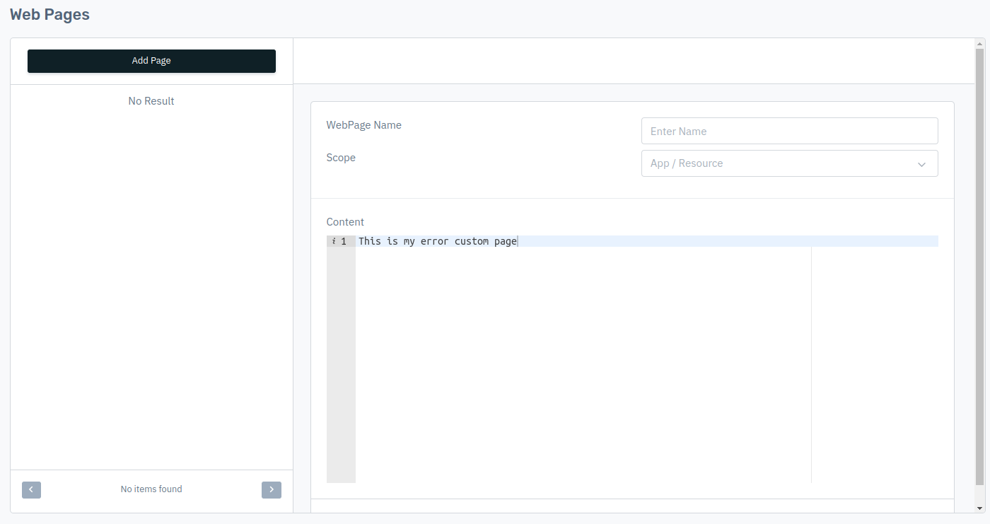 - Click on "Add Page" option and write HTML code for error page and save changes.