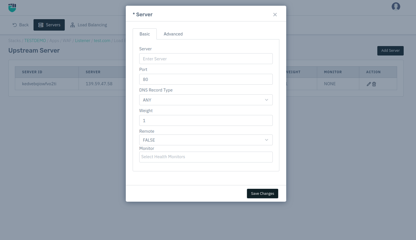 - Go to Apps > WAF > listener > Server Groups > Servers.