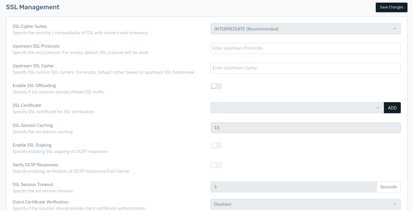 - Select SSL certificate from the drop- down menu and click on save changes.