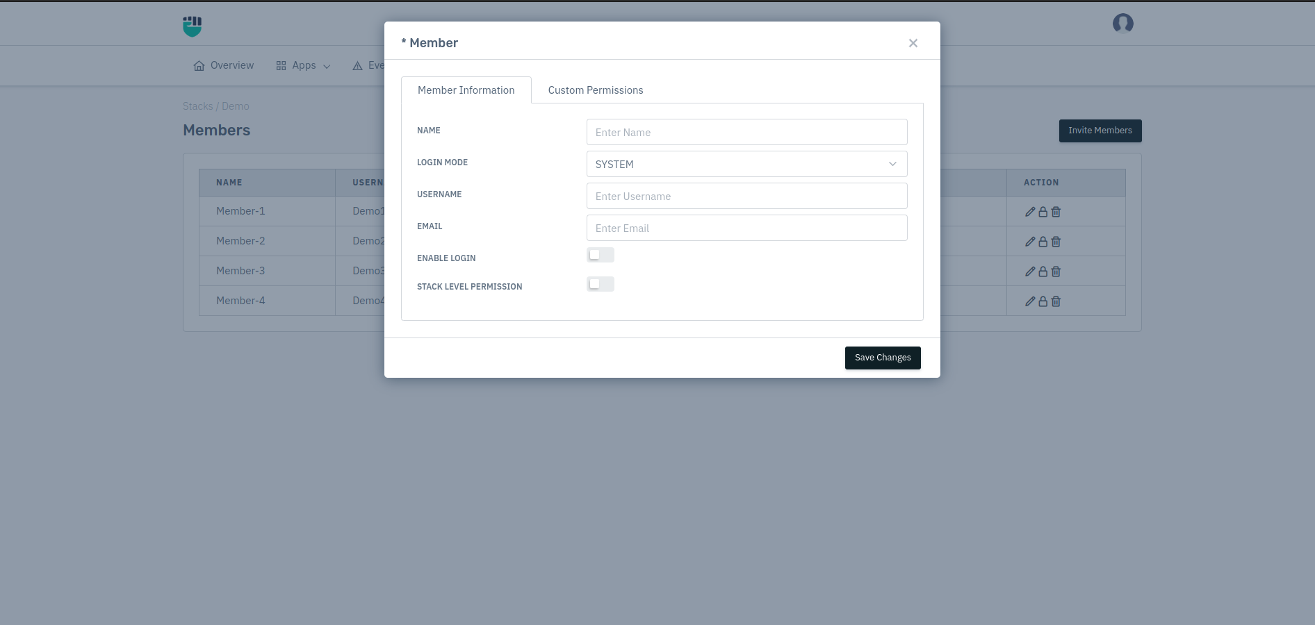 Now go to System > Select Stack > Member > Invite Members