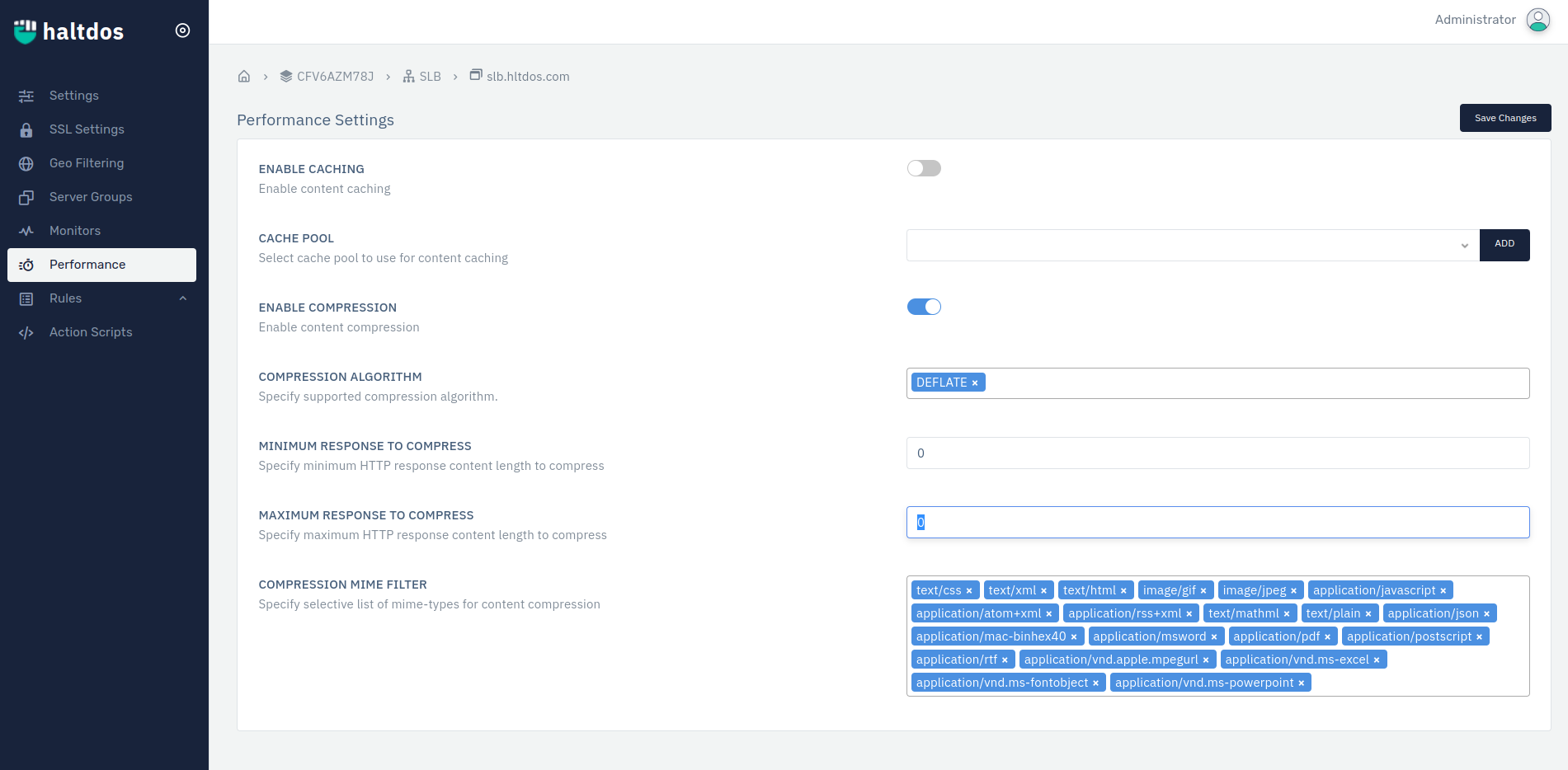 Performance settings are designed to increase the performance of the traffic coming from the client-side. Users can enable the caching and compression method to increase the performance of the system.